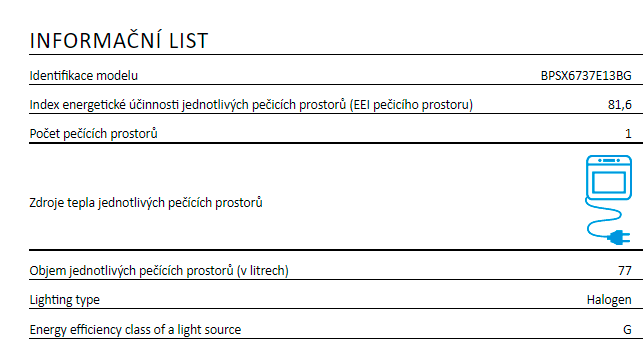 Spotřeba energie (nucená konvekce vzduchu)        0,71 kWh