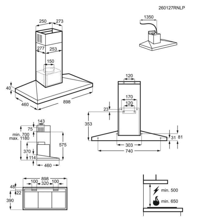 Digestoř - s recirkulací i odtahem, komínová, pevná, na zeď, šířka 89,8 cm, energetická třída B, hlučnost 69 dB, 3stupňový výkon 600 m³/h, zpětná klapka, LED osvětlení, mechan ...Více informací