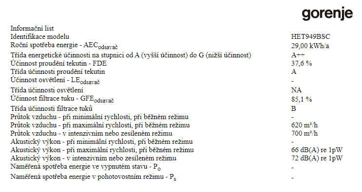 49 990,00 CZKGORENJE HET949BSC