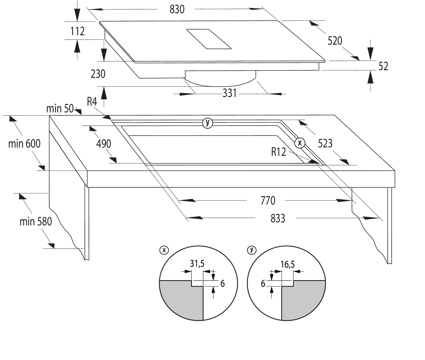 Minimální výška otvoru pro instalaci