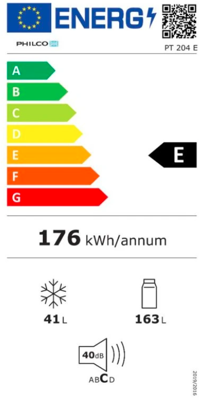Jednodvéřová chladnička Philco PT 204 EB Energetická třída E Umístění mrazící části nahoře Počet dveří 2 Celkový objem 204 l Emisní třída hluku C Objem chladničky 163 l Objem ...Více informací